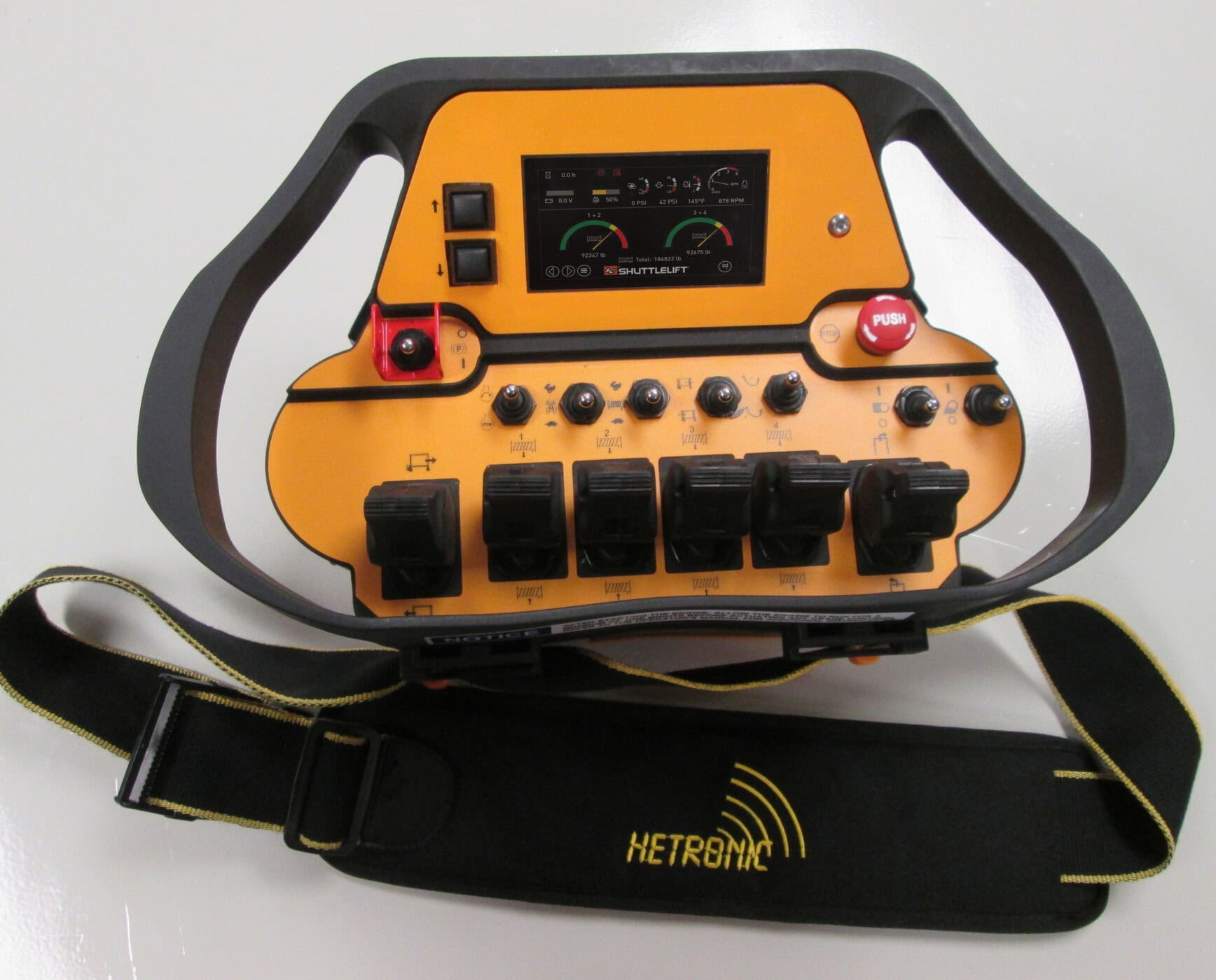 (DB Series: Rubber Tired Gantry Crane) Shuttlelift's Wireless Remote Control increases operator visibility of the load by allowing the operator to be anywhere around the load or work being performed, improving operational safety and ensuring maximum maneuverability.