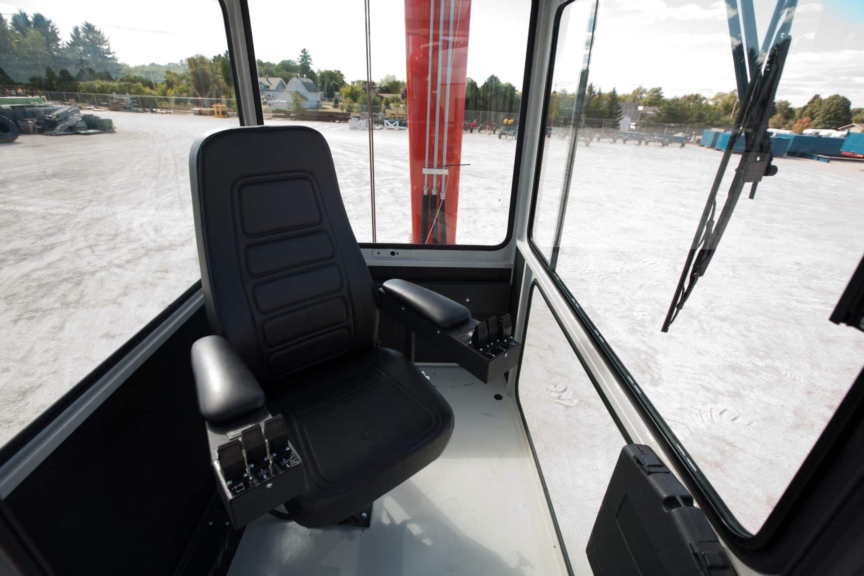 The spacious enclosed cab provides comfort/protection for the operator in inclement environments and comes equipped with a defroster fan and windshield wiper. The seat also has the ability to index 180 degrees to allow the operator maximum visibility.