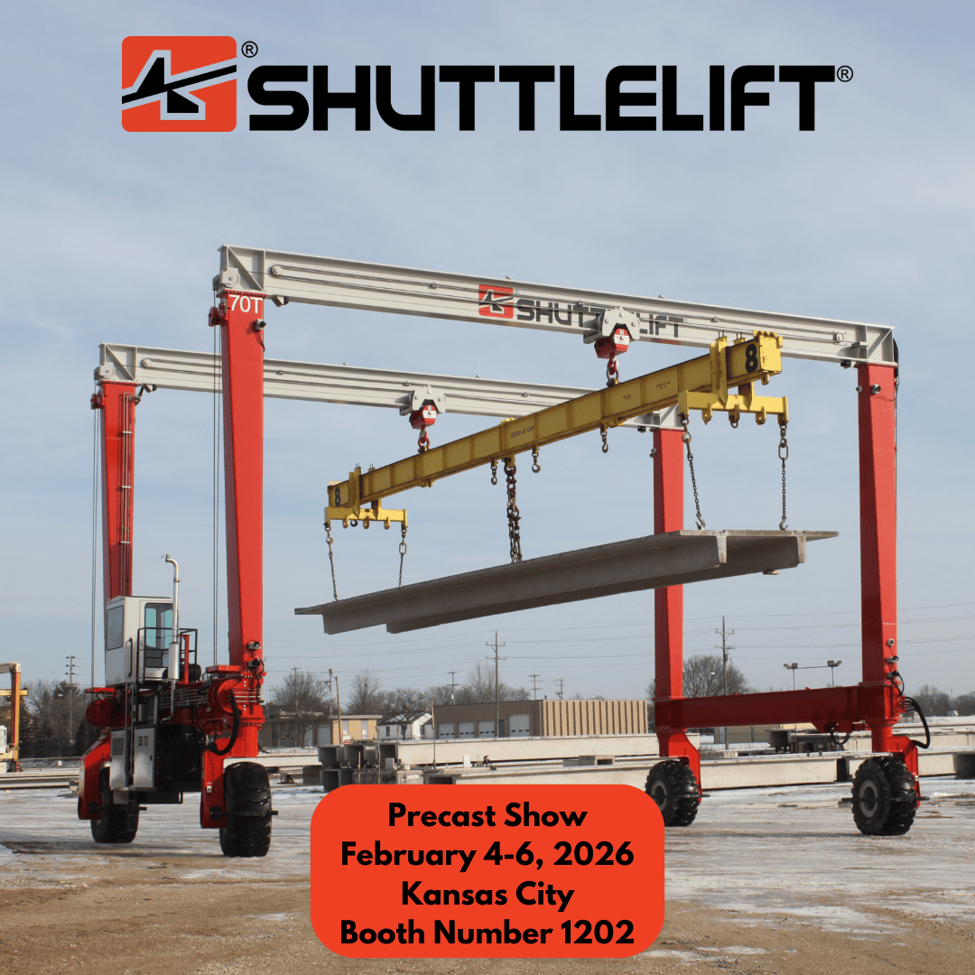 Stop by Booth 1202 and discover how a Shuttlelift rubber-tired gantry crane can enhance efficiency and precision in your concrete handling processes